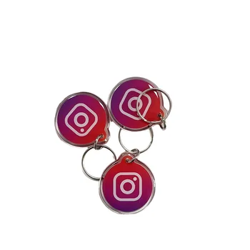 • Personalized RFID NFC Epoxy Keychain Key Fob 213/216 Business Card Social Media Custom Print 13.56MHz Waterproof